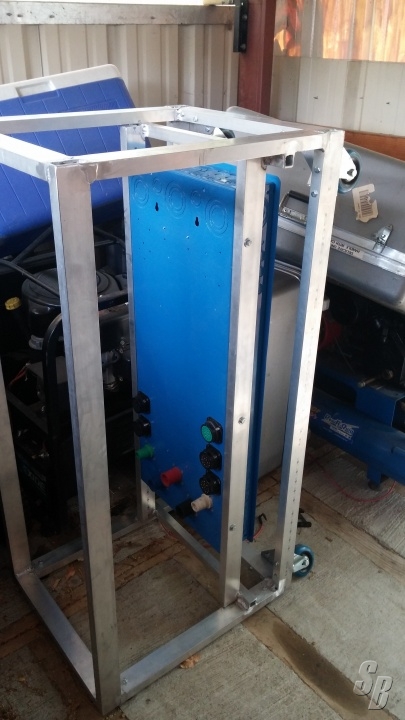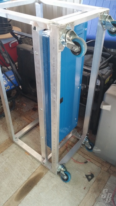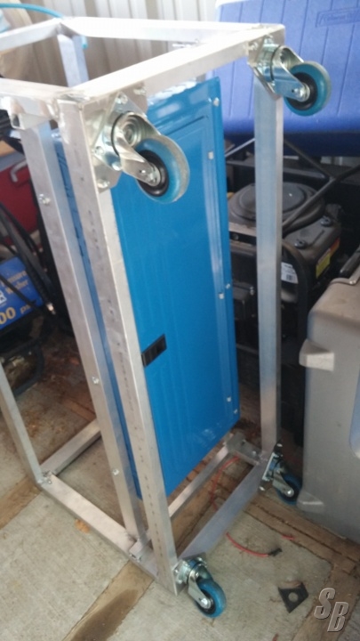INDUSTRIAL PANEL IS MOUNTED IN AN ALUMINUM FRAME WITH 3” CASTERS