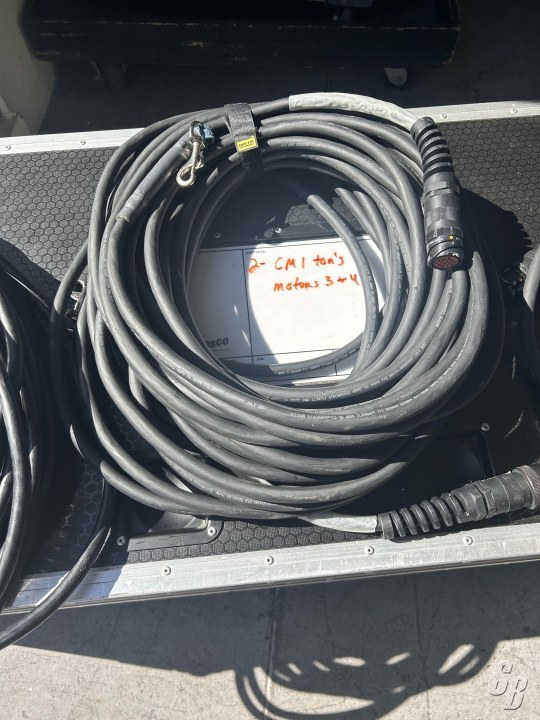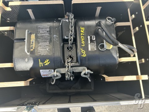 MOTORS COME WITH 3- 100' MOTOR CONTROL CABLES, 2- CHAIN BAGS, 1- FIASCO DUAL MOTOR ROAD CASE, ORIGINAL PAPERWORK AND CURRECT CERTICATES OF LOAD TESTING.