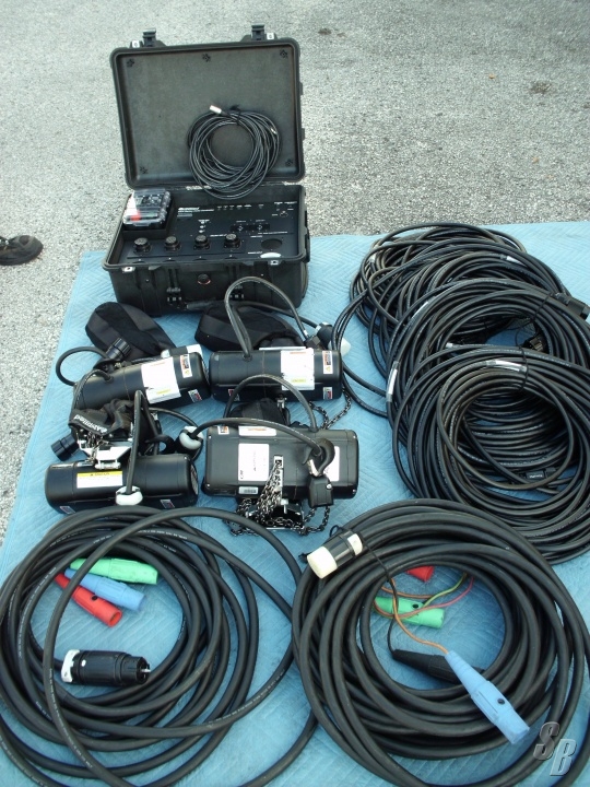FEATURES: (4) CM PROSTAR 1/4; TON DOUBLE REEVE THREE PHASE MOTORS WITH 1/4 TON RATING. (4) 7 PIN SOCOPEX CABLES 100. (1) 4 CH APPLIED CONTROLLER. (1) 5030 AMP TWISTLOCK TO CAMLOCK THREE PHASE POWER CABLE. THESE ARE STILL UNDER FACTORY WARRANTY.