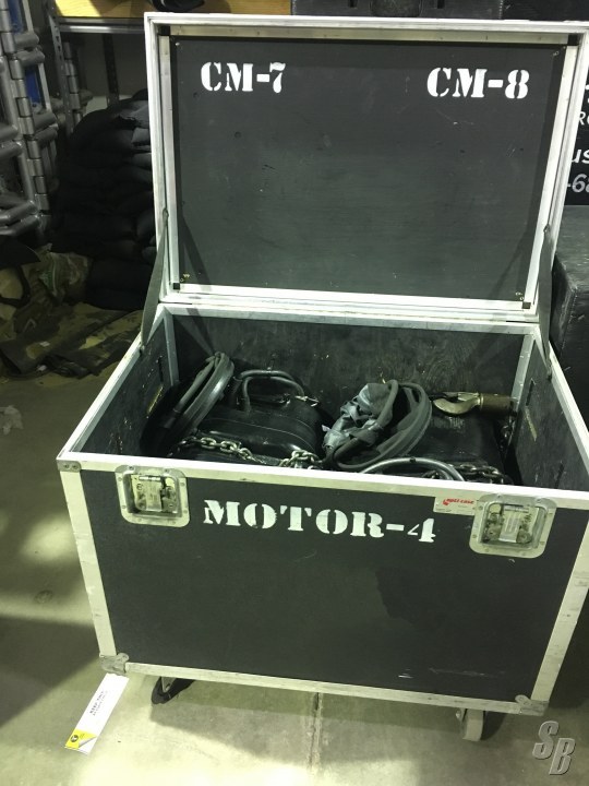 AVAILABLE FOR SALE:EIGHT (8) 1 TON SINGLE PHASE CM MOTORS IN ROAD CASES (2 TO A CASE) (YOM:????) (SN:TBD)