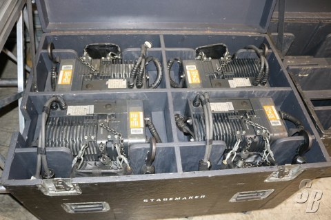 8 EA STAGEMAKER 1/2 TON HOISTS (YOM:????) (SN:TBD) W/ 60' LIFT GOOD (7-8) IN 2 EA. QUAD CASES
