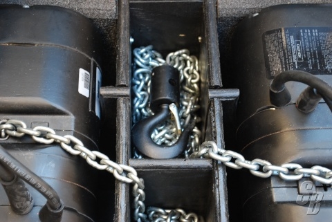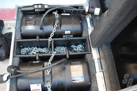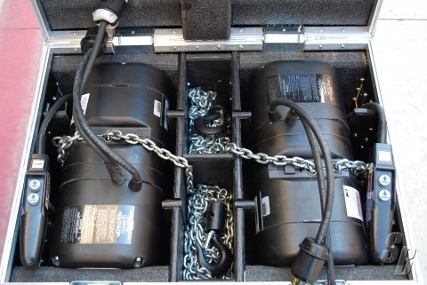 EXTRAS: NEW ROAD CASE (BY NORTHERN CASE) WITH ALL MOTOR CONTROL CABLE AND TWO CONTROLLERS. 60' OF CHAIN WITH CHAIN BAGS.