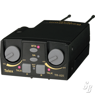BOSCH AUDIOCOM MODEL TR-825 TWO-CHANNEL BINAURAL (DUAL LISTEN) UHF WIRELESS BELT PAC RTS, 4 PIN MALE A4M) HEADSET JACK