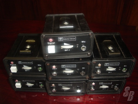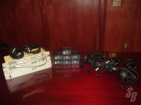 FEATURES: 2-CLEARCOM RM-120, 1-CLEARCOM PS-452, 7-BP-1 BELT PACKS & 9-SINGLE MUFF HEAD SETS. GOOD/GREAT CONDITION