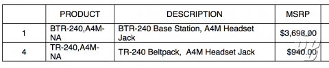 TR-80N BELT PACK, A4M HEADSET JACK FREQ F3 |
