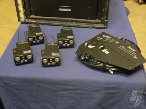 FEATURES: 1- BTR800 4 DROP UHF INTERCOM SYSTEM WITH 4- BTR825 2 CH. BELT PACKS,4- BP700 RECHARGEABLE BATTERIES, 4- BP700 AA BATTERY HOLDERS,1- ALEXANDER/TELEX 4 BATTERY CHARGING DOCKING STATION, 2- 50' TNC-TNC ANTENNA CABLES,2- ALP450 DIRECTIONAL ANTENNAS.