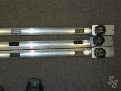 3> THE LAMP BARS ARE 7' 6" LONG AND HOLD 6 FIXTURES WITH STANDARD 3 PIN CONNECTORS AND THRU HOLES FOR FIXTURE MOUNTS AND BAR HANGERS.