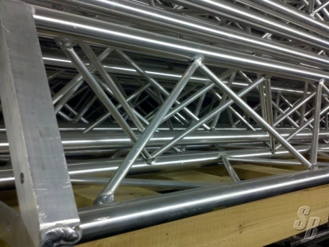 FEATURES: APPLIED ELECTRONICS UL TRI TRUSS 12" THIS TRUSS WAS USED ONCE, IT WAS DESIGNED TO BE TWO 46'X35' VIDEO FRAMES (NO SCREEN INCLUDED)