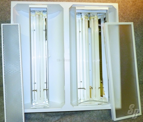 FIXTURE HOUSING IS MADE OF FORMED, COLD-ROLLED SHEET STEEL, DOME SHAPED INTERIOR FIXTURE HOUSING. LOW-GLOSS, EASY TO CLEAN WHITE FINISH. REFLECTORS ARE MADE OF FORMED ALUMINUM SHEET-METAL CONSTRUCTION, FEATURING 97% REFLECTANCE.