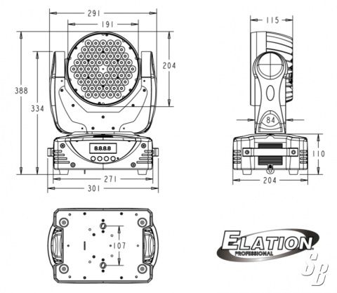 • 180W TOTAL LIGHT OUTPUT (~5820 LUX @3M)• RED, GREEN, BLUE AND WHITE LEDS• OPTIMIZED COLOR MIXING• 630° PAN, 265° TILT• VERY FAST MOVEMENT• AUTO SWITCHING POWER SUPPLY• 100~240VAC 50/60HZ)