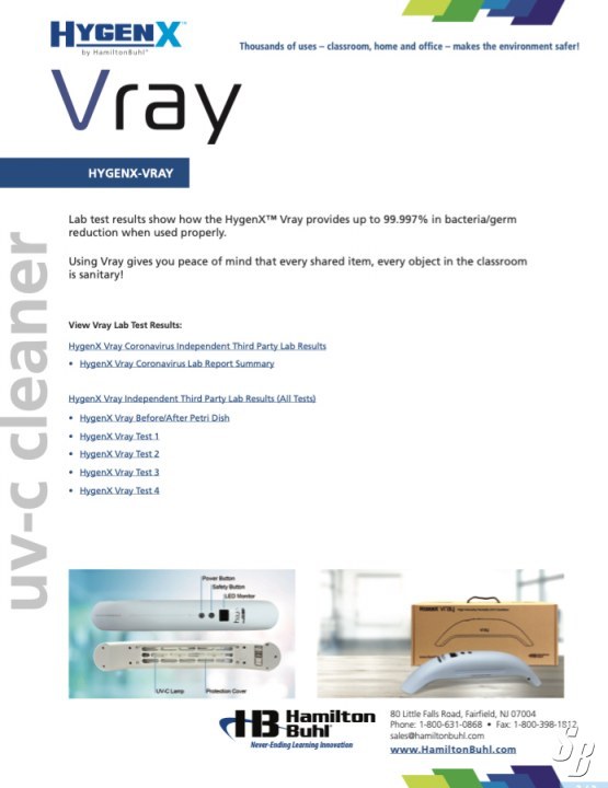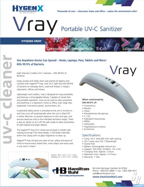 EASILY, QUICKLY AND SAFELY CLEAN AND SANITIZE ALL OBJECTS AND SURFACES WITH HYGENX™ VRAY, WITH UV-C LIGHT THAT KILLS 99.9% OF BACTERIA ON EVERYDAY ITEMS, USED AND SHARED, IN TODAY’S CLASSROOMS, OFFICES AND HOMES.