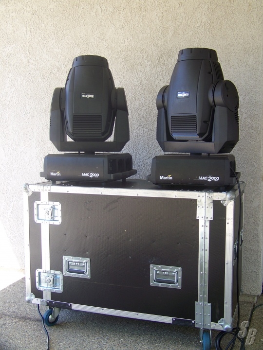 FEATURES: THE MARTIN MAC2000 WASH REALLY NEEDS NO BUILD UP. BY ALL MEASURES IT THE STANDARD BY WHICH ALL WASHES ARE COMPARED. THESE ARE THE ELECTRONIC BALLAST VERSIONS. INCLUDED WITH EACH PAIR IS THE MARTIN 2000 DUAL FLIGHT CASE. THERE ARE NO A/C CONNECTORS INCLUDED JUST BAREWIRES. THE LIGHTS ARE CLEAN INSIDE AND OUT WITH MINOR SURFACE SCRATCHES FROM BEING LOADED IN AND OUT OF THE CASES.