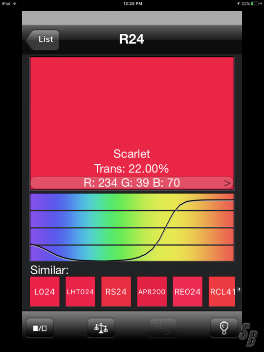 FEATURES: SET OF (47) ROSCO R24 SCARLET