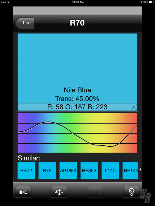 FEATURES: SOLD AS SET OF (55) ROSCO R70 NILE BLUE