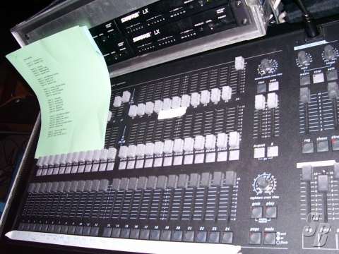 FEATURES: DMX 512 LIGHTING CONSOLE, 48 INDIVIDUAL FADERS FOR CONVENTIONAL LIGHTING, 576 PROGRAMABLE SCENE, 12 MOVING FIXTURE WITH UPTO 36 DMX CHANNELS EACH.