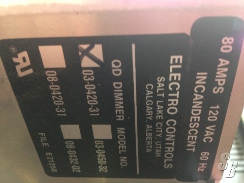 FEATURES: FROM WORKING ENVIRONMENT QD DIMMER MODULES MODEL 03-0420-31 80 AMPS 120 VAC 60 HZ INCANDESCENT ELECTRO CONTROLS. THERE ARE 25 UNITS TOTAL FOR SALE. OF THE UNITS, ONE UNIT HAS ONE MODULE BREAKER THAT WILL NOT FLIP. PLEASE TAKE NOTE OF THE PHOTOS FOR INFORMATION.