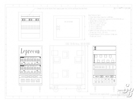 STANDARD 24 CHANNEL RACK, IT IS IN AN 18RU ATA CASE AND HAS TOP ACCESS ROUND CONNECTOR STYLE HOT PATCH W/6 NON-DIM CIRCUITS AND BREAKERS, 8 VEAM/SOCAPEX LOAD PANEL, STAGE PIN & EDISON LOAD PANEL, 1/3 PHASE 3-POLE 100A MAINS, DUAL CAMLOC W/ REVERSE NG, VOLT METER & AN AUX. OUTLET PANEL. PLEASE SEE ATTACHED DRAWING FOR RACK DETAILS.