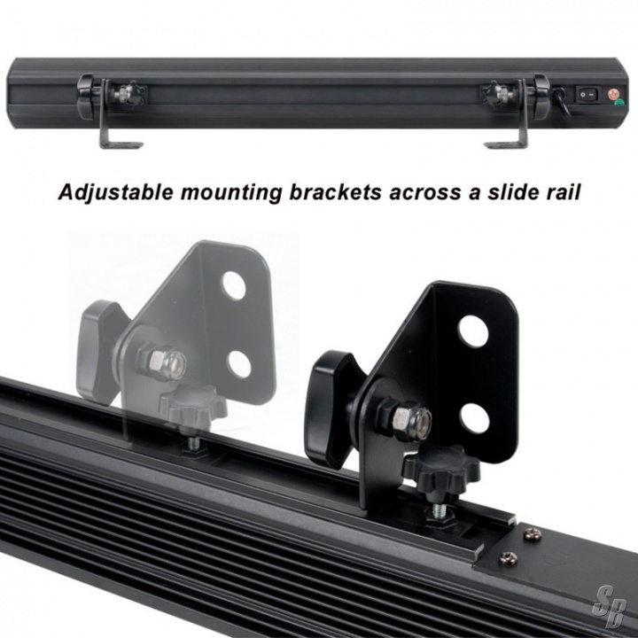 THIS ECO-FRIENDLY UV LINEAR FIXTURE IS EQUIPPED WITH ADJUSTABLE MOUNTING BRACKETS ACROSS A SLIDE RAIL. THIS ALLOWS USERS TO GET THE PERFECT MOUNTING POSITION TO ATTACH TO WALLS OR CEILINGS. THE MOUNTING BRACKETS MAY ALSO ALLOW FOR THE FIXTURE TO BE SET ON THE GROUND FOR WALL WASHING.