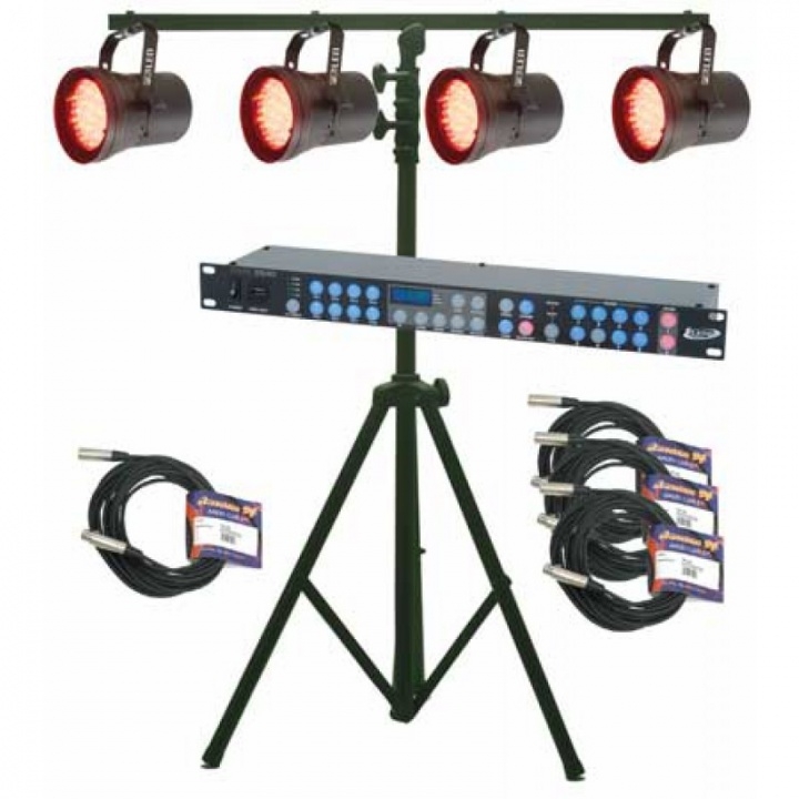 THE ADJ P36 LED SYSTEM IS A MUST FOR ANY SERIOUS ENTERTAINER. THIS IS A COMPLETE DJ LIGHTING SET UP THAT COMES WITH ANYTHING YOU WILL NEED TO START A PROFESSIONAL LIGHTING SET UP. THE P36 LED SYSTEM COMES WITH FOUR AMERICAN DJ P36 LED PAR CANS, A DMX DUO RECORDER AND CONTROLLER, AND A LTS-6 TRIPOD STAND THAT LETS YOU EASILY POSITION THE ENTIRE ENSEMBLE.