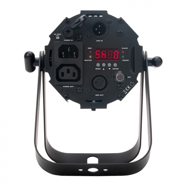 THE PAR Z4 OFFERS A VARIETY OF CONTROL FEATURES SUCH AS: 5 OPERATIONAL MODES, 4 DMX CHANNELS MODES, 5 DIMMING CURVES, AND A 4-BUTTON CONTROL MENU DISPLAY. THIS DYNAMIC PAR ALSO HAS AN ADJUSTABLE SCISSOR YOKE, DMX IN/OUT AND IEC IN/OUT TO DAISY-CHAIN POWER (13 FIXTURES AT 120V / 24 FIXTURES AT 230V). IT MAY ALSO BE CONTROLLED BY THE ADJ UC IR WIRELESS REMOTE (SOLD SEPARATELY).