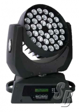 36X10W CREE 4-IN-1 RGBW LED MOVING WASH DMX CHANNELS: 38 PAN: 540コ/630コ TILT: 265コ VARIABLE 2700K~8000K WHITE TEMP 18HZ VARIABLE STROBE 0-100% DIMMING SLOW-FAST MOTOR SPEED ADJUSTMENT OPERATING MODES: DMX, SOUND ACTIVE, AUTO, MASTER/SALVE