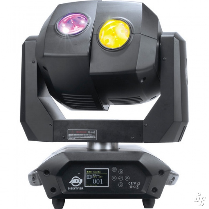 AMERICAN DJ 3SIXTY 2R -, DUAL MOVING HEAD FIXTURE WITH CONTINUOUS, INDEPENDENT ROTATION, 14 COLORS, 15 GOBOS, 8-FACET PRISM, FROST FILTER (WASH) ALL POWERED BY 2 X PHILIPSï½® PLATINUM 2R DISCHARGE LAMP (135W,6,000 HR)