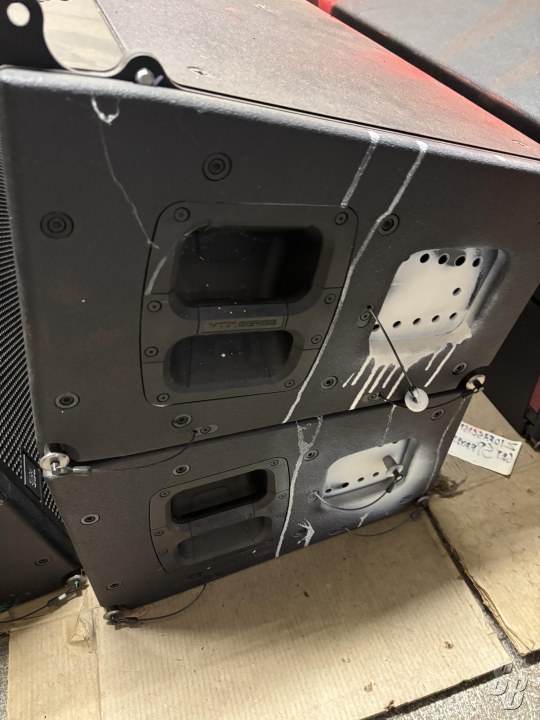 12 USED JBL VTX A12 CABINETS. THE CABINETS HAVE SEEN SOME VANDALISM, BUT THE DRIVERS ARE ALL WORKING. DOES NOT COME WITH THE ARRAY FRAME OR ANY RIGGING.