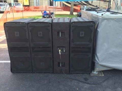 3 JBL VT4887 WITH COVERS AND DOLLIES