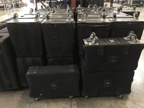 18 JBL VT4889 WITH COVERS AND DOLLIES