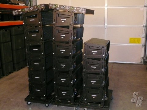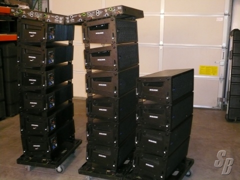 FEATURES: EACH CABINET HAS THREE 500 WATT AMPLIFIERS AND ONE 275 WATT AMPLIFIER. ONE AMP CHANNEL FOR EACH DRIVER. EACH CABINET CONTAINS TWO 8" LOW FREQUENCY DRIVERS AND ONE 3" HF COMPRESSION DRIVER.