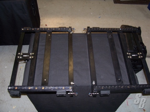 EXTRAS: 2 CUSTOM CASES ARE AVAIL. EACH HOLDS 4 BOXES RIGGED TOGETHER. PULL OFF TOP, TRAY BASE, HANDLES, CASTERS, 1/2" BIRCH PLY W/ 1" RIGID FOAM.