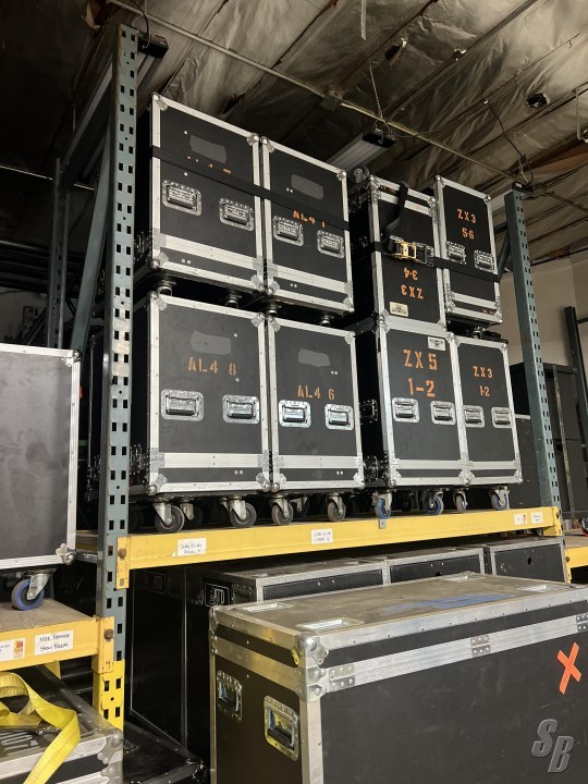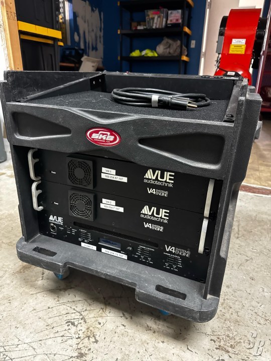 ROAD CASES FOR ALL SPEAKERS. SUBS ON WHEELED DOLLY. ALL CABLES INCLUDED.