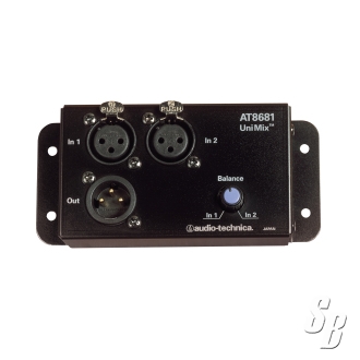 AUDIO TECHNICA AT8681 UNIMIXï½® 2-TO-1 MIC COMBINER WITH BALANCE CONTROL THAT ATTENUATES EACH MICROPHONE BY 6 DB (TYPICAL) AT MIDPOINT. BRAND NEW WITH FULL FACTORY WARRANTY, FOB OH,