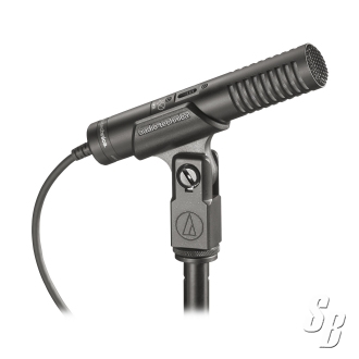 AUDIO TECHNICA PRO 24 PAIR OF CARDIOID ELEMENTS IN X-Y CONFIGURATION. FOR LOW-IMPEDANCE INPUTS. ON/OFF SWITCH; PERMANENTLY ATTACHED 6' (1.8 M) CABLE WITH 3.5 MM STEREO PLUG AT OUTPUT END. POWERED BY INCLUDED BATTERY OR PLUG-IN POWER PROVIDED BY SOME DEVICES. INCLUDES: AT8405A STAND CLAMP FOR 5/8"-27 THREADED STANDS; WINDSCREEN; LR44 BATTERY, SOFT PROTECTIVE POUCH.