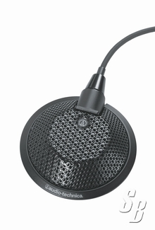 AUDIO TECHNICA U841A OMNIDIRECTIONAL CONDENSER BOUNDARY MICROPHONE. 11-52V PHANTOM POWER OR 1.5V AA BATTERY. PERMANENTLY ATTACHED 25' CABLE WITH TA3F-TYPE CONNECTOR TO MATE WITH POWER MODULE. INCLUDES AT8531 POWER MODULE (OFF/ON/ROLL-OFF SWITCH) WITH XLRM-TYPE OUTPUT CONNECTOR AND BATTERY.