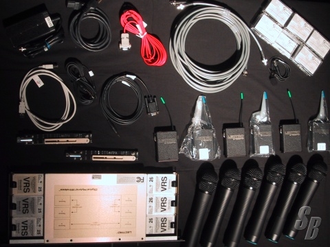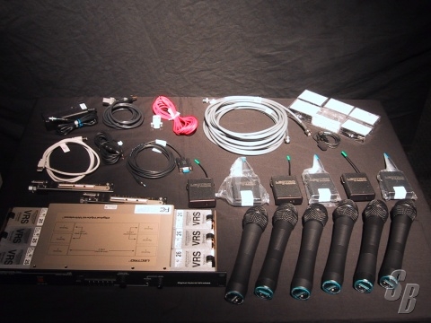 EXTRAS: 2 BSN CABLES, 1 USB CABLE, 1 POWER SUPPLY CABLE, 2 VGA (FEMALE) TO 1/8" STEREO JACK, 2 LECTRO SNA ANTENNAS, 6 SOFT SHELL MIC CASES, 1 SOFT SHELL WIRELESS PACK CARRYING CASE