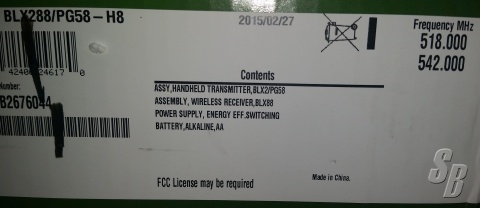 SHURE BLX288/PG58 (YOM: 2015) (S#: TBD) UNOPENED BOX - NEVER USED (10)