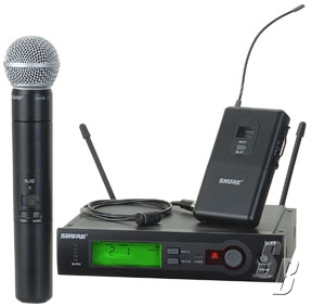 SHURE SLX124/85/SM58 WIRELESS MIC, INCLUDES SLX4 DIVERSITY RECEIVER, SLX1 BODYPACK TRANSMITTER, MICROFLEXï½® WL185 CARDIOID LAVALIER MICROPHONE, SLX2/SM58 HANDHELD TRANSMITTER WITH SM58 MICROPHONE