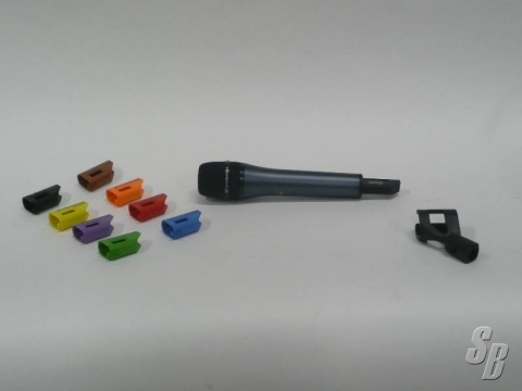 -TWO SENNHEISER SKM3072 HANDHELD TRANSMITTERS WITH CAPSULES, MIC CLIPS, AND 8 COLOR-CODED PROTECTIVE CAPS. (584-608 MHZ)