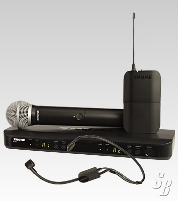 (1) PGA31 HEADSET MICROPHONE (1) BLX2/PG58 HANDHELD TRANSMITTER WITH PG58 MICROPHONE