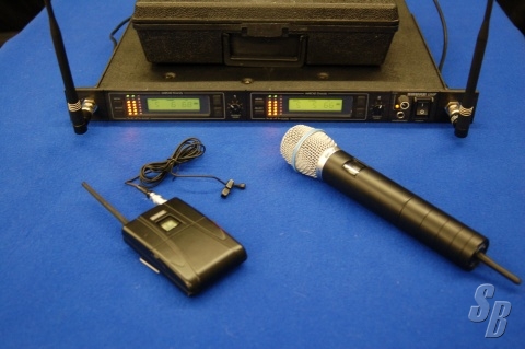 EXTRAS: 2 BNC FOR FRONT & REAR ANTENNA MOUNT. PLASTIC CARRYING CASE FOR HAND HELD MIC & LAV. & MIC.