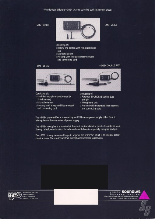 SOUNDLAB ELECTRONICS SMS VIOLIN, VIOLA, CELLO, DOUBLE BASS (YOM: ?) (S#: TBD) SUPERB (8-9) FEATURES: