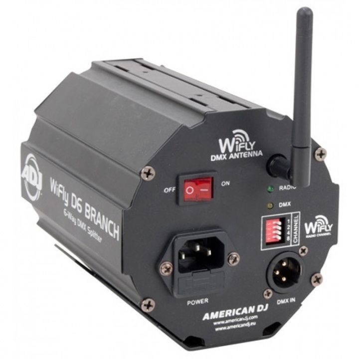 DO YOU WANT TO MANAGE YOUR DMX FIXTURES WITHOUT THE NEED FOR SO MANY DMX CABLES CLUTTERING UP YOUR PRODUCTION? THE WIFLY D6 BRANCH IS THE WIRELESS SOLUTION YOU NEED. COMBINED WITH THE USE OF A WIFLY OR WIRELESS ENABLED ADJ DMX CONTROLLER, THE WIFLY D6 BRANCH WIRELESS SPLITTER/AMPLIFIER ALLOWS TO MAKE YOUR FIXTURES WIRELESS AND EASY TO MANAGE. BY SIGNIFICANTLY REDUCING YOUR NEED FOR DMX CABLES IN YOUR PRODUCTION YOU MAKE SET-UP EASIER, REDUCE THE RISK OF A PLUG FAILURE OR TRIPPED OVER WIRE, WHILE ALSO MAKING YOUR WHOLE PRODUCTION CLEANER AND LESS CLUTTERED. THOUGH LIGHTWEIGHT, THE WIFLY D6 BRANCH IS BUILT FROM HIGH QUALITY MATERIALS MAKING IT THE IDEAL BLEND OF FUNCTIONALITY, DURABILITY AND PORTABILITY. THIS UNIT IS PERFECT FOR ANY CLUB, BAR, STAGE OR MOBILE SHOW LOOKING TO REDUCE THEIR NEED FOR WIRES, DECREASE SET-UP TIME, AND ELIMINATE RESTRICTIONS ON WHERE CONTROLLERS AND FIXTURES CAN BE PLACED IN RELATION TO ONE ANOTHER. MODERNIZE YOUR LIGHT SHOW PRODUCTION TODAY, GO WIRELESS WITH THE WIFLY D6 BRANCH DMX SPLITTER/AMPLIFIER FROM ADJ.