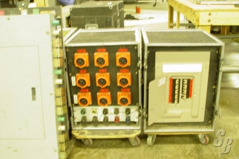 HUBBEL PIN AND SLEEVE POWER DISTRO IN EXCELLENT CONDITION. 400 AMP MAIN DISTRO W/ CAMLOCK IN AND 3 CAMLOCK OUTS. 100 AMP PANEL W/ CAMLOCK IN AND 6 P/S OUT. 2 BREAKER PANELS IN ROAD CASES WITH CAMLOCK LOOP THROUGH AND 9 P/S OUT'S EACH WITH A BUNCH OF RACK PANELS WITH P/S INPUTS AND ELEC. BOXES AND AND A PILE OF P/S, P/S CABLE, P/S --EDISON, P/S--QUAD. PICS AVAILABLE FOB CO.