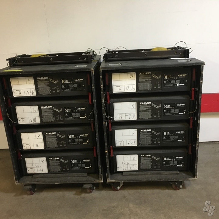 FEATURES: (16) EV XLD MINT, (2) EV XLD FLY FRAMES, (2) XLD TRAVEL/PROTECTION CARTS, (2) MT CASES AMP RACKS, IN EACH AMP RACK THERE IS (1) MOTION LAB'S L21-30 RACK PACK, (1) EV DX46, (3) EV CP3000S GREY FACE AMPS. ALSO INCLUDED ARE (14) 2' NL8 JUMPERS, (4) 19 PAIR SOCAPEX UNBONDED CABLES AND (2) SETS OF SOCAPEX TO DUAL NL8 BREAKOUTS. (2) EV C BEAMS FOR XLD IN CASES. AMP RACKS HAVE VERY NICE INTERNAL WIRING, WITH HINGED DOOR BACKS.