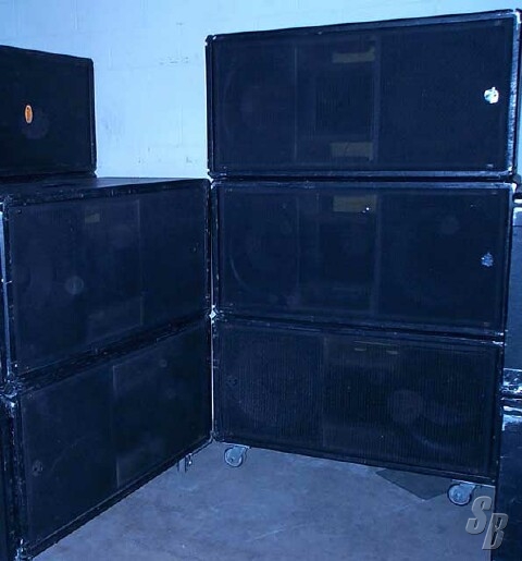 CLAIR BROS R4III SPEAKERS, (1997-8)W/ FLYWARE & DOLLIES, 20 AVAIL, CROSSOVERS, RECTANGULAR BOX CREST, LATEST VERSION, EMAIL US FOR ADDIITIONAL INFO AND PICS, RACK CONTAINING 4 CREST 14-SPACE AMP RACKS WITH A 9001, 8001, 7001 IN EACH FOB VA. USA