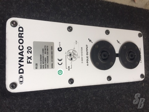 FEATURES: HE DYNACORD FX 20 IS A PLANAR WAVEGUIDE BASSHORN, EQUIPPED WITH THE HIGH-POWER ELECTRO-VOICE EVX 180B 18" TRANSDUCER. FREQUENCY RESPONSE IS 30HZ - 150HZ (-10DB), SO THE CROSSOVER FREQUENCY TO MID-HI CABINETS CAN BE CHOSEN STRICTLY APPLICATION-ORIENTED BETWEEN 80HZ AND 140HZ. THE CABINET IS EQUIPPED WITH AN ELECTRONIC CIRCUIT CALLED VOICE COIL TRACKING PROTECTION. THIS CIRCUIT SENSES THE TERMINAL VOLTAGE OF THE TRANSDUCER AND SIMULATES THE THERMAL BEHAVIOUR OF THE WOOFER´S VOICE COIL. IN CASE OF POTENTIAL THERMAL OVERLOAD THE POWER APPLIED TO THE SPEAKER IS REDUCED TO A SAFE LEVEL. POWER AMPS UP TO 1200W/8OHMS CAN BE USED IN ORDER TO HAVE MAXIMUM DYNAMIC RANGE WITHOUT THE DANGER OF THERMAL OVERLOAD IN NON-CONTROLLED SITUATIONS. THE VOICE COIL TRACKING PROTECTION EXHIBITS “SOFT” SWITCHING CHARACTERISTICS, SO NO ANNOYING CLICKS OR POPS ARE AUDIBLE. THE CIRCUITRY AUTOMATICALLY RESETS AFTER THE VOICE COIL TEMPERATURE HAS REACHED A SAFE VALUE. THE FX 20 CABINET IS MADE OF 15MM POPLAR PLYWOOD. ALL CORNER JOINTS AND BRACES ARE GROOVED AND GLUED. THE CABINET SURFACE IS COVERED WITH A HEAVY-DUTY BLACK CARPET. A POWDER- COATED STEEL GRILLE AND AN ACOUSTIC FOAM FRONT PROTECTS THE SPEAKERS. THE CONNECTOR PANEL USES TWO 4-POLE SPEAKON CONNECTORS (IN/OUT) FOR A SAFE CONNECTION AND EASY DAISY-CHAINING TO OTHER CABINETS. THE PIN ASSIGNMENT IS 1+/1-. PINS 2+ AND 2- ARE ALSO CONNECTED BETWEEN THE RESPECTIVE TWO SPEAKON CONNECTORS. WHEN USING DYNACORD POWER AMP RACKS OR SYSTEM AMPLIFIERS, THE WHOLE SYSTEM CAN BE WIRED WITH 4-POLE SPEAKON CABLES WITHOUT ANY DANGER OF ACCIDENTAL WIRING MISTAKES. THE CABINET IS EQUIPPED WITH EIGHT LARGE RUBBER FEET THAT ALLOW EASY STACKING. SIX HANDLES AND FOUR HEAVY-DUTY CASTORS ON THE REAR SIDE GUARANTEE EASY AND SAFE TRANSPORT.