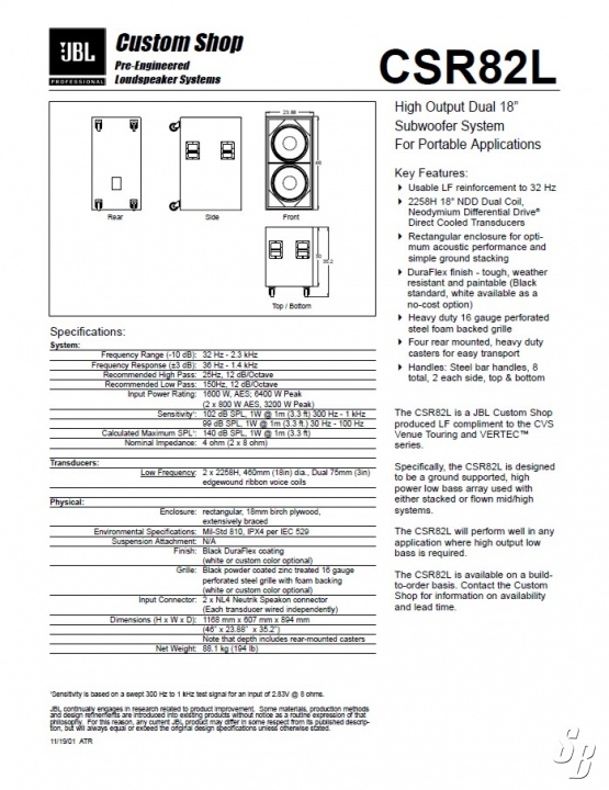 FEATURES: JBL CUSTOM SHOP DUAL 18" SUBWOOFERS