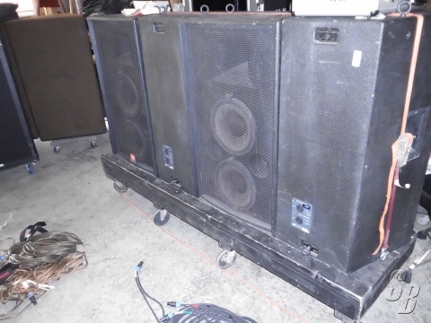 FEATURES: 4 JBL SRX 4731F FLYABLE PA CABS WITH THE FLY BOLTS DUAL 12S WITH HORN.COMES WITH 8 WHEEL DOLLIE FOR TRANSPORT.