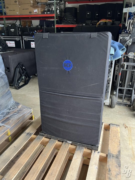 V SOUND LLC RCF LINE ARRAY IS IN GOOD SHAPE AND IN WORKING ORDER. ALL SALES ARE FINAL. THE FLY BAR IN THE PICTURE IS NOT THE ONE IT COMES WITH.